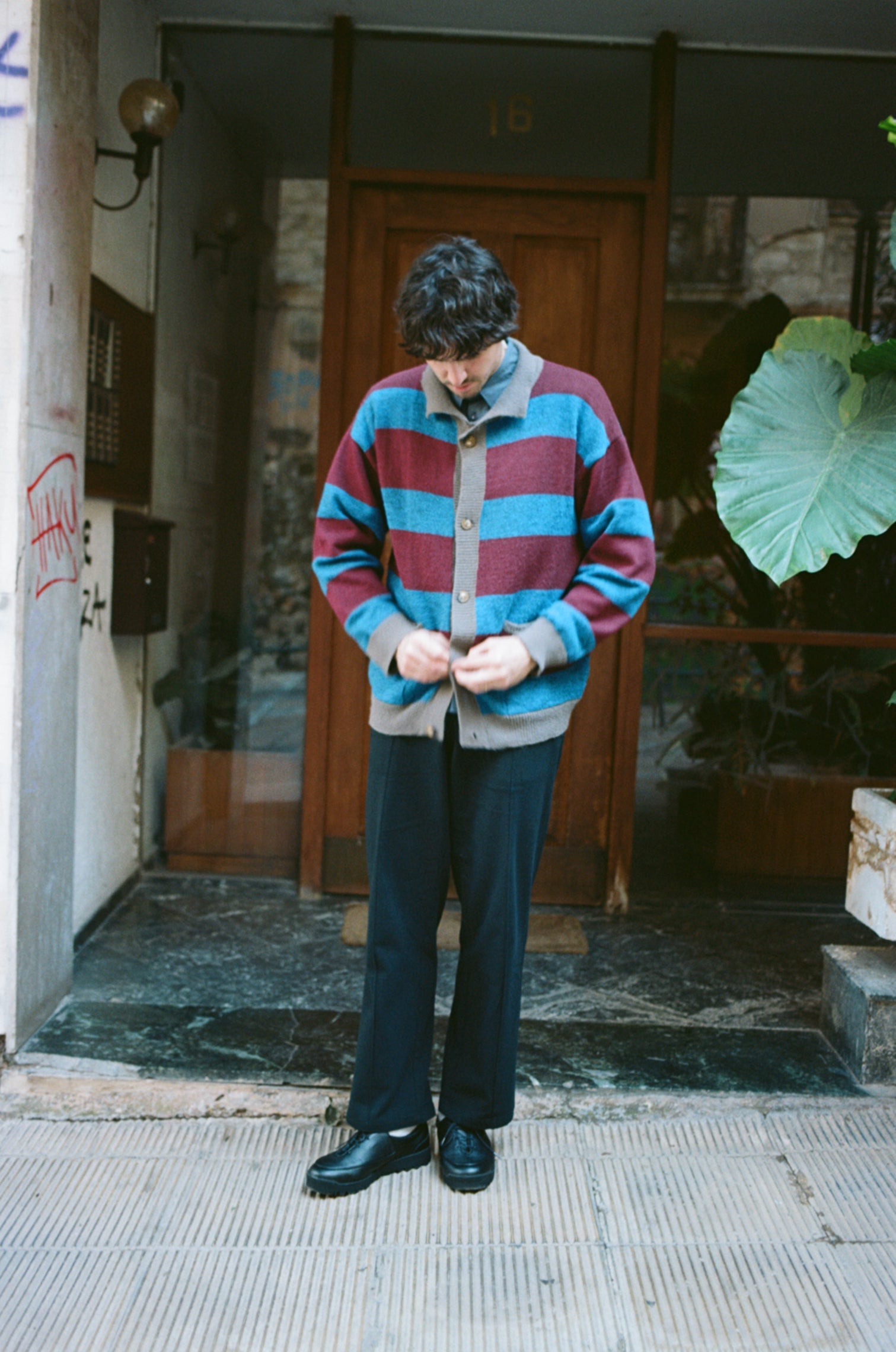striped cardigan (blue / burgundy)
